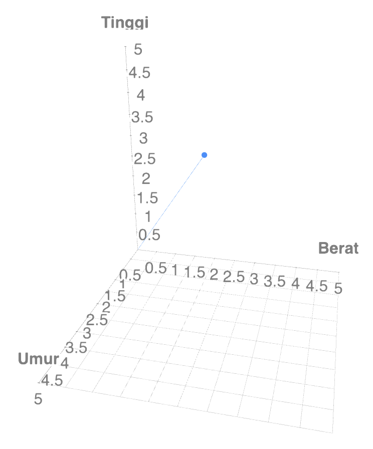 Misalkan kita memiliki data point Data point dapat kita representasikan ke dalam space pada titik koordinat . Kita bisa sebut vektor karena adalah magnitude dari origin ke titik seperti pada gambar.